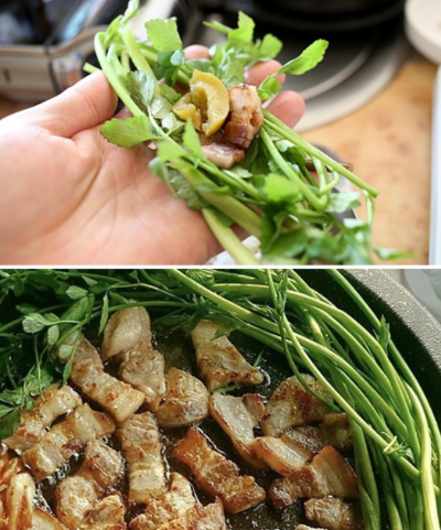 - 미나리 삼겹살: 삼겹살과 함께 구워 먹으면 향이 배가됨