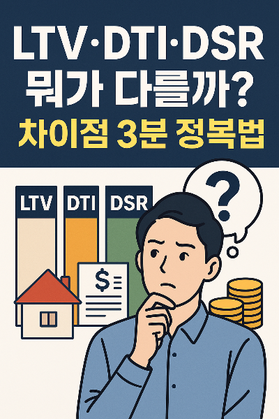 2025년 정부 기준에 따라 LTV, DTI, DSR의 개념, 계산법, 적용 조건을 전문가 시점에서 정확하게 분석했습니다.