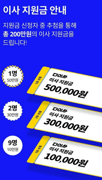 다이사 홈페이지에서 견적 신청만 해도 자동 응모되더라고요. 간단해요!