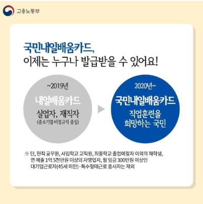 국민내일배움카드는 고용노동부가 국민의 직업 능력 향상을 위해 제공하는 지원 카드입니다.만 15세 이상 대부분의 국민이 신청할 수 있으며, 최대 500만 원의 훈련비를 지원받습니다.재직자, 구직자, 자영업자 모두 해당되며, 원하는 훈련 과정을 고용24에서 찾아 신청 가능합니다.