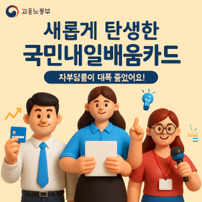 내일배움카드는 단순한 교육카드가 아니라, 미래를 바꾸는 투자입니다.정부 지원으로 수백만 원 상당의 훈련비를 아낄 수 있고, 경력 전환이나 취업 준비에도 강력한 무기가 됩니다.즉시 발급으로 하루 안에 카드를 받을 수 있는 이 기회를 놓치지 마세요.지금 바로 고용24에서 신청을 시작해보세요!