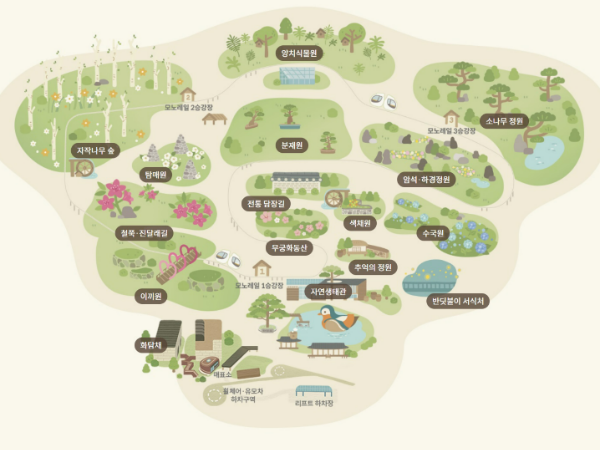 - 입구 → 소나무원 → 메타세콰이어길 → 단풍나무길 → 출구