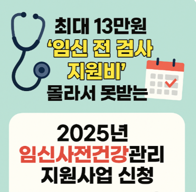 보건복지부는 2024년부터 ‘임신 사전건강관리 지원사업’을 통해 임신 전 건강을 미리 점검하고 고위험 요인을 조기 발견할 수 있도록 검사비를 지원해왔습니다.기존에는 결혼한 부부 또는 예비부부만 지원 대상이었으나, 2025년부터는 결혼 여부 및 자녀 유무에 관계없이 20~49세 모든 남녀로 대상을 확대합니다.
